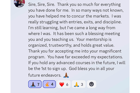 He has spent the last three years trading full-time, mentoring over 500 students, and helping his community generate over $3,000,000 in documented profits through his methods. His approach is simple: teach people how to think, not what to copy.